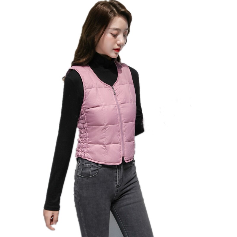 鸭鸭轻薄羽绒服马甲女V领反季基础修身背心休闲蓬松鸭绒马夹外套X