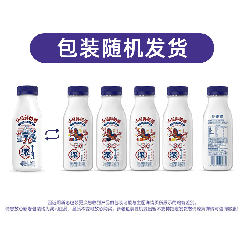 新希望今日鲜奶铺牛乳255ml瓶装儿童牛奶学生营养早餐低温牛奶