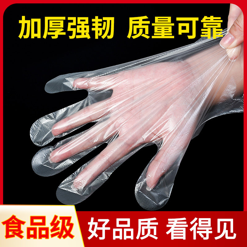 一次性手套加厚款透明薄膜手套PE食品级烘焙餐饮外卖家务手膜批发