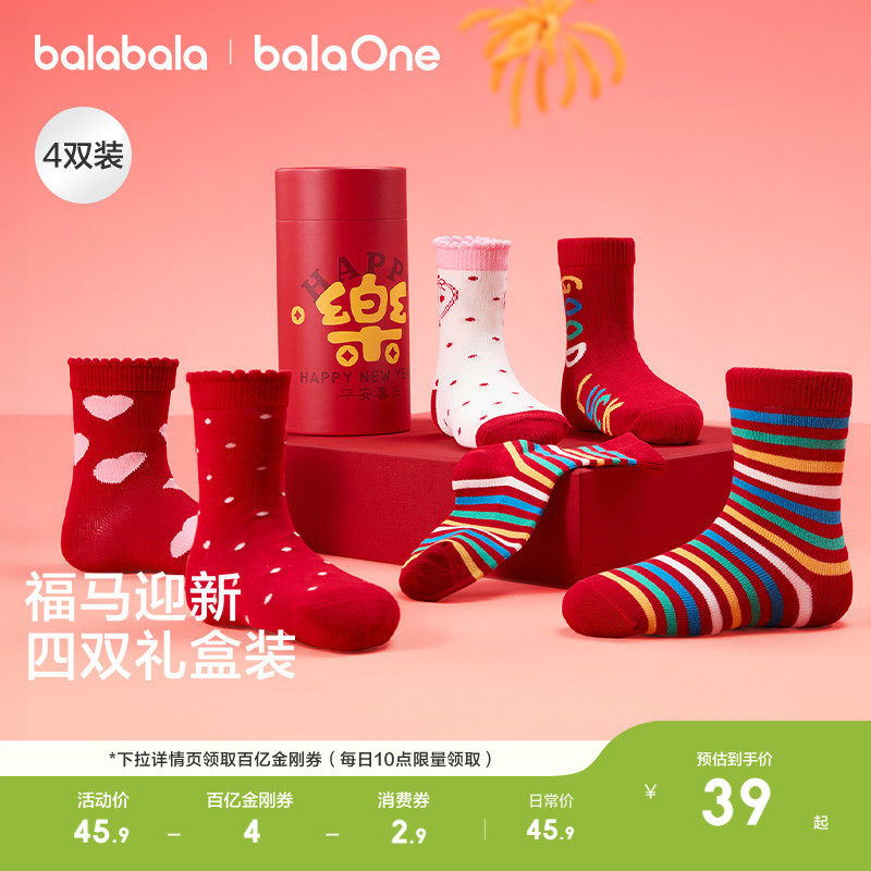 【balaOne】巴拉巴拉儿童袜子春秋男女童棉袜提花短袜新年五双装