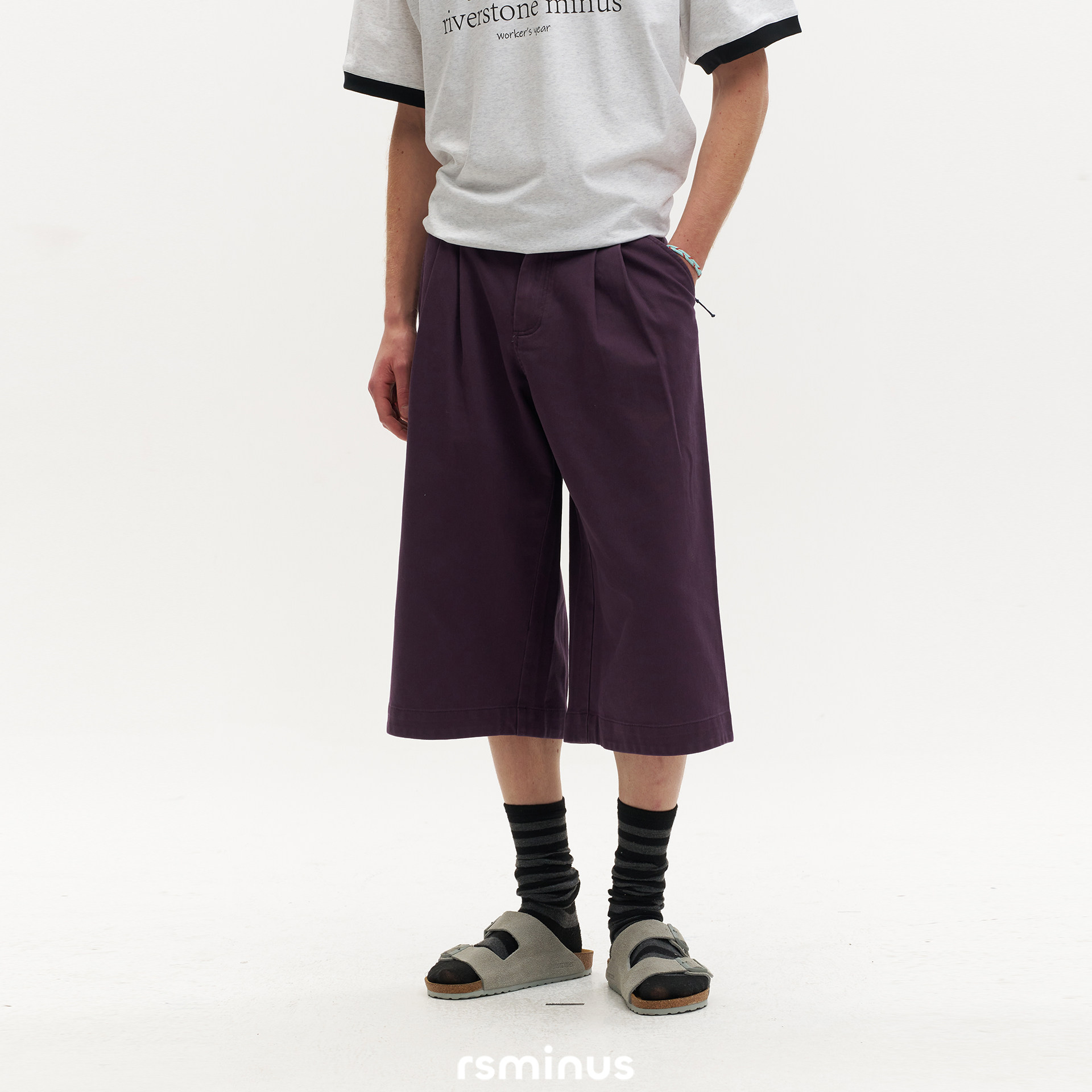 riverstone男生复古宽松运动七分裤子2026夏季男款透气阔腿短裤潮