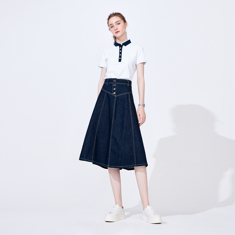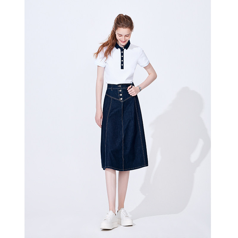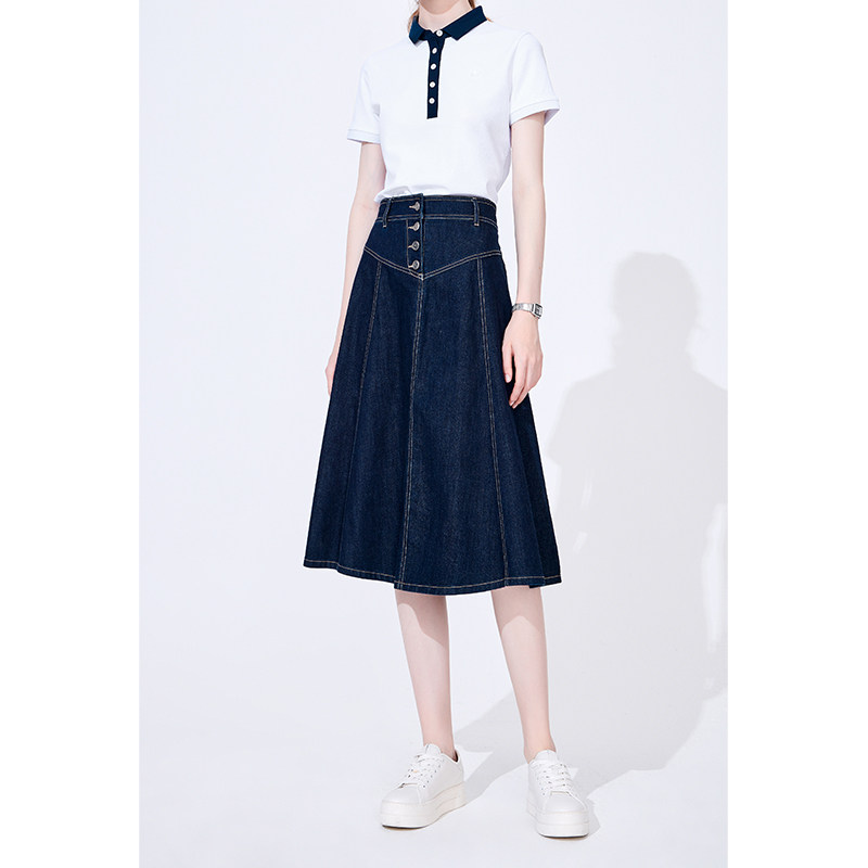 Navigare意大利小帆船蓝色休闲牛仔半身裙女士设计感显瘦a字裙子