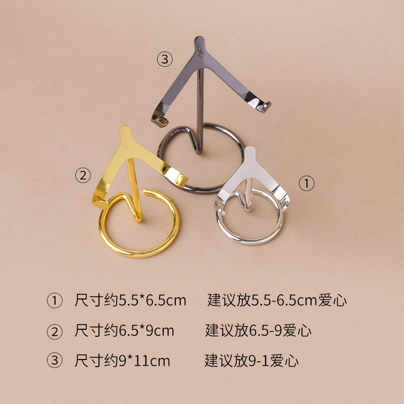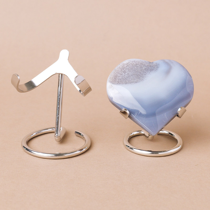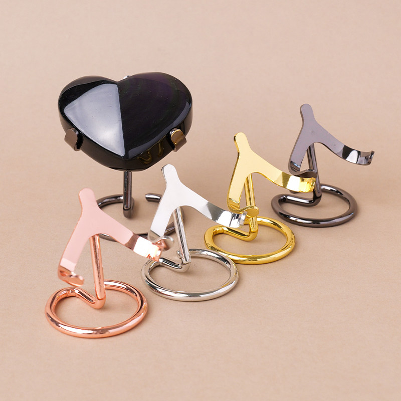 水晶展示架原石矿标心形水晶簇矿石化石标本收纳金属底座支架子