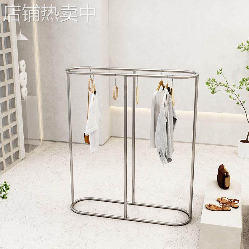 服装店展示架不锈钢拉丝银色挂衣架男女童装店中岛货架落地陈列架
