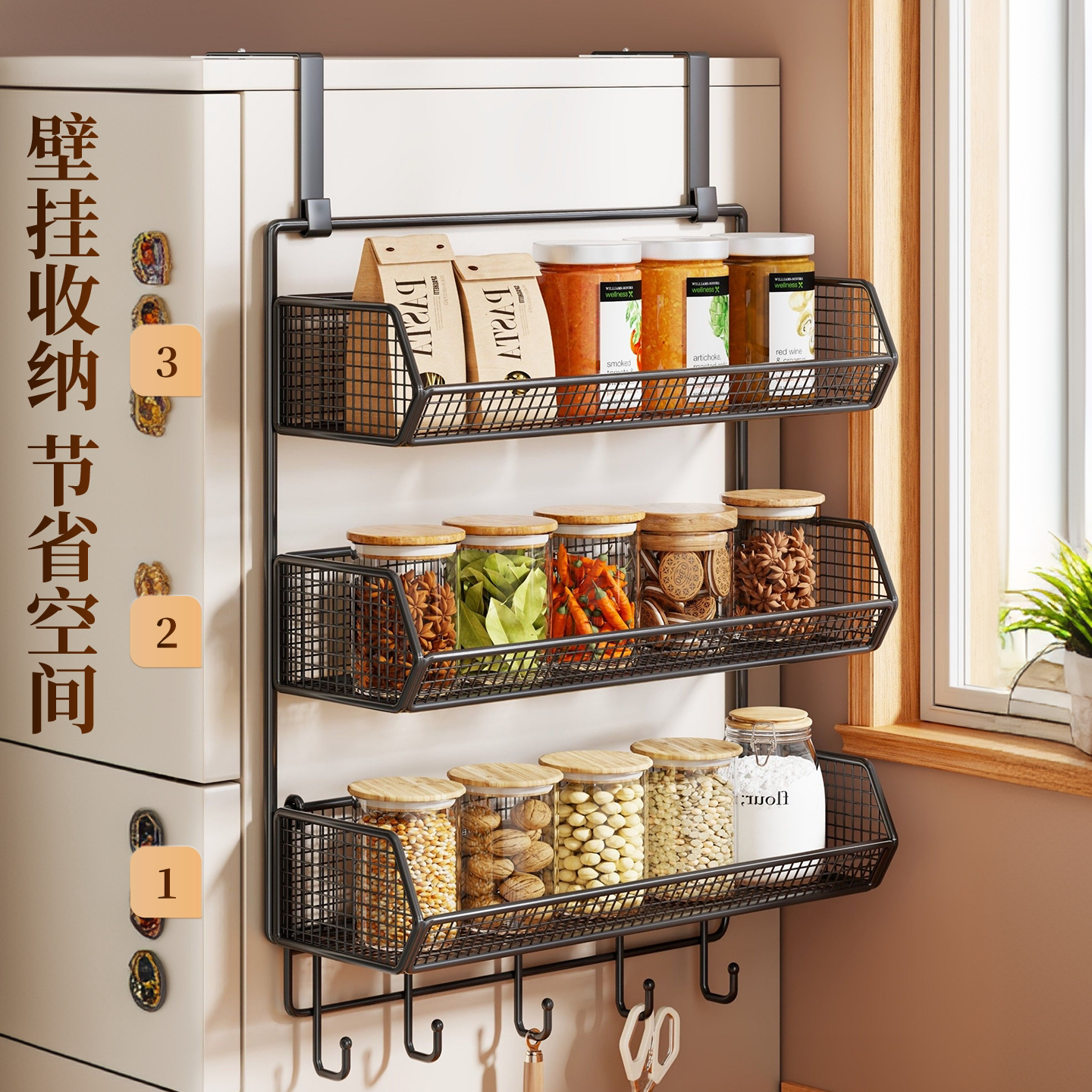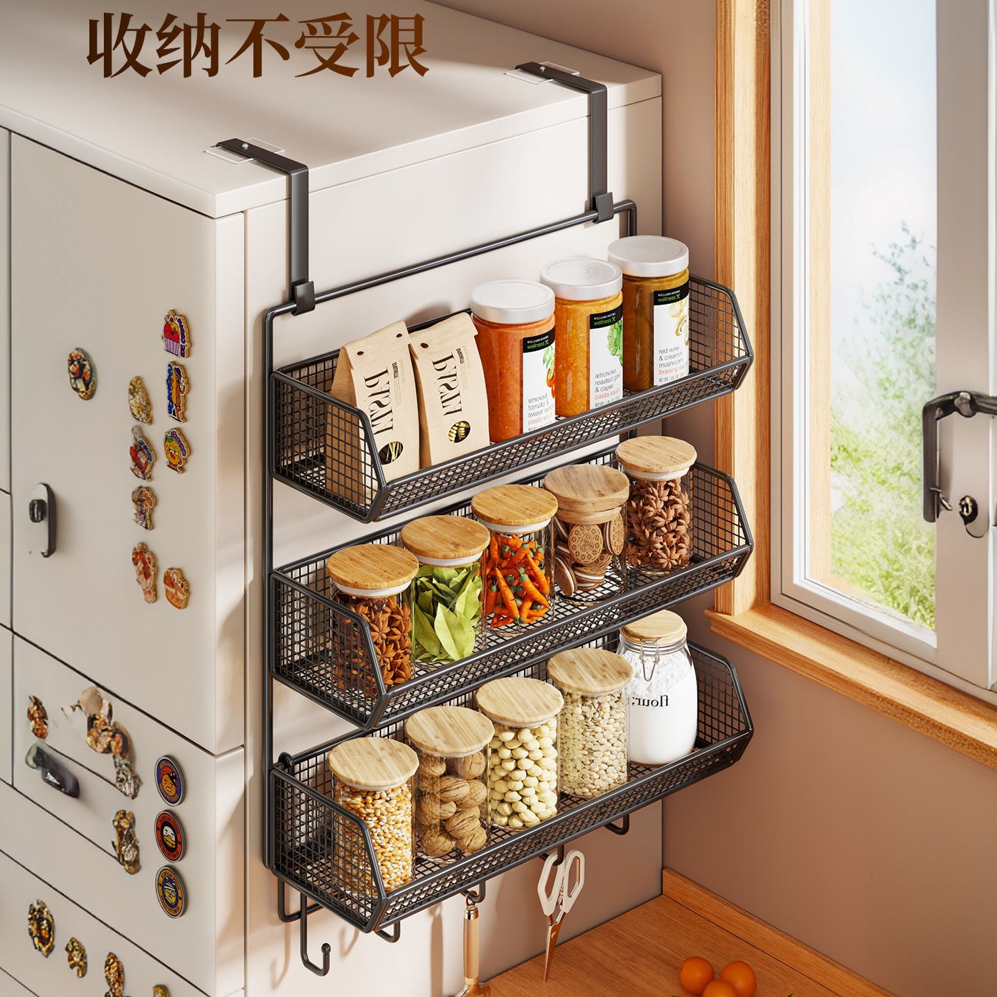 冰箱置物架侧面边收纳架壁挂大容量多层保鲜膜调料瓶免打孔放置架