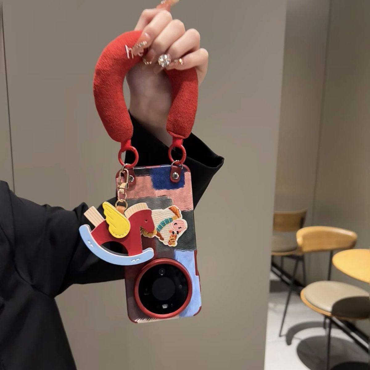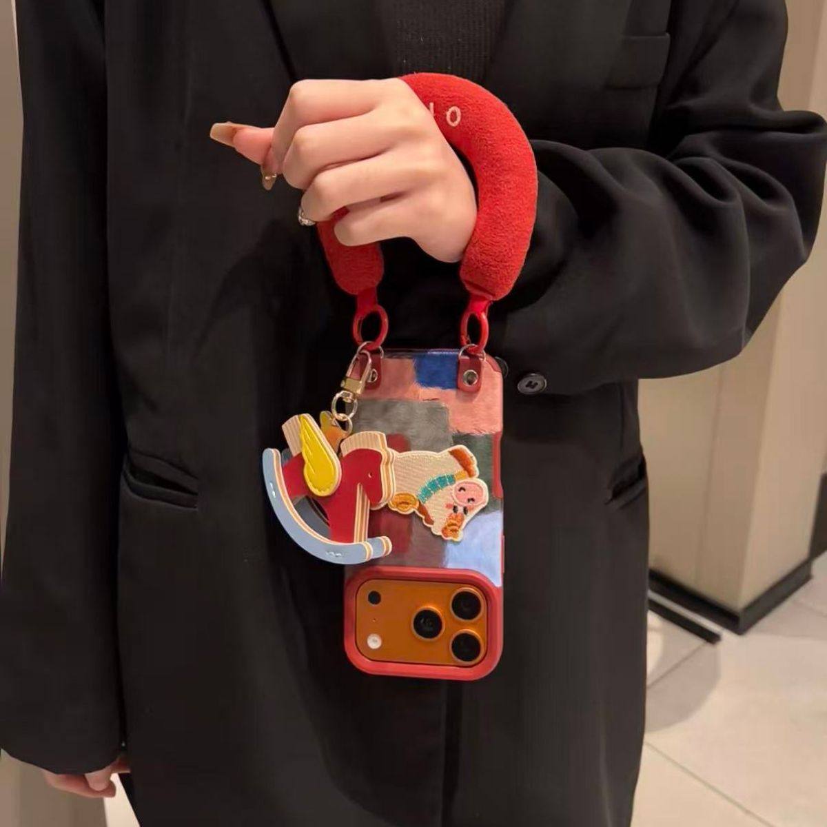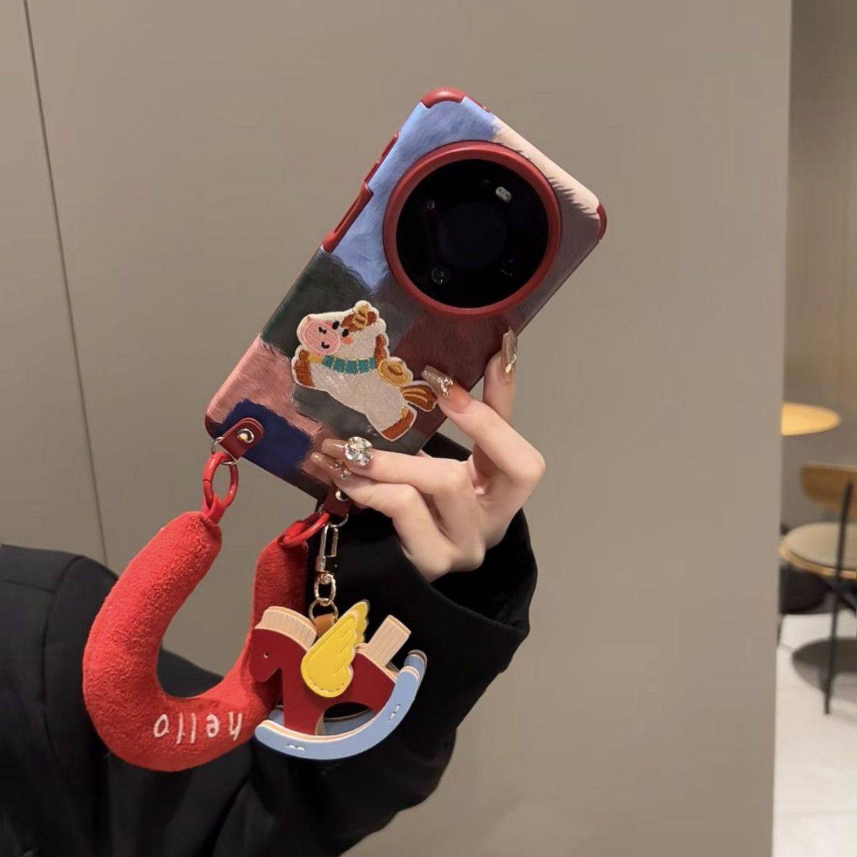 半糖壳野ins秋冬色块拼接刺绣元宝马适用华为mate80手机壳mate60pro防摔70pro手绳mate70挂件p80保护套女