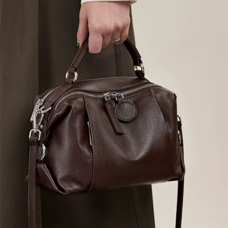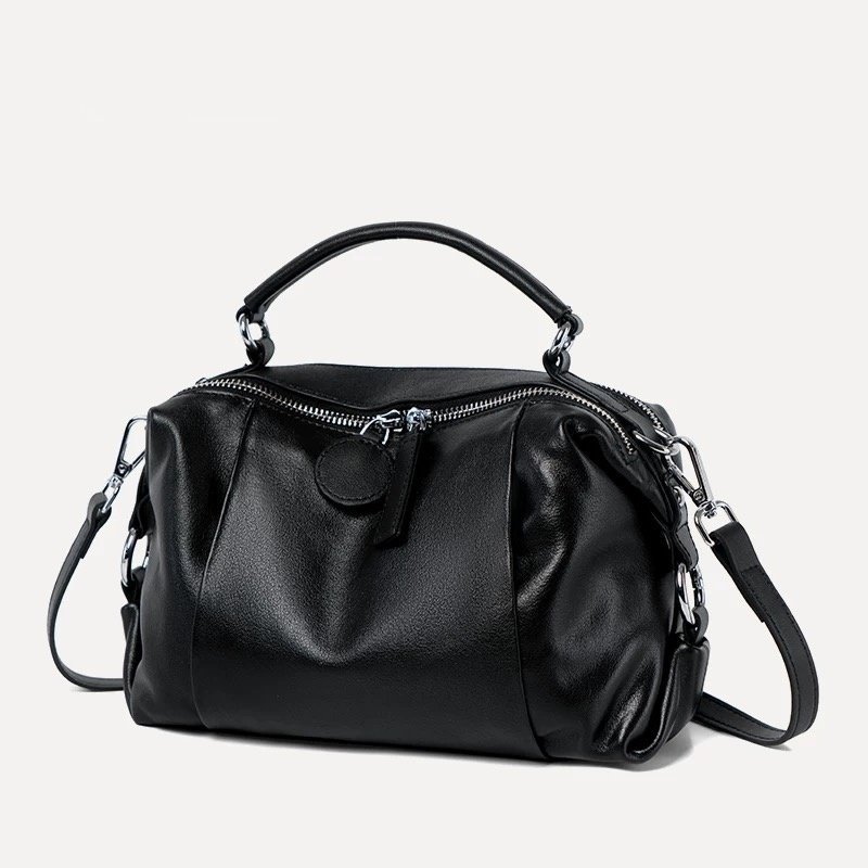 头层牛皮斜挎包软皮枕头包时尚大容量女士手拎包通勤包女植鞣休闲