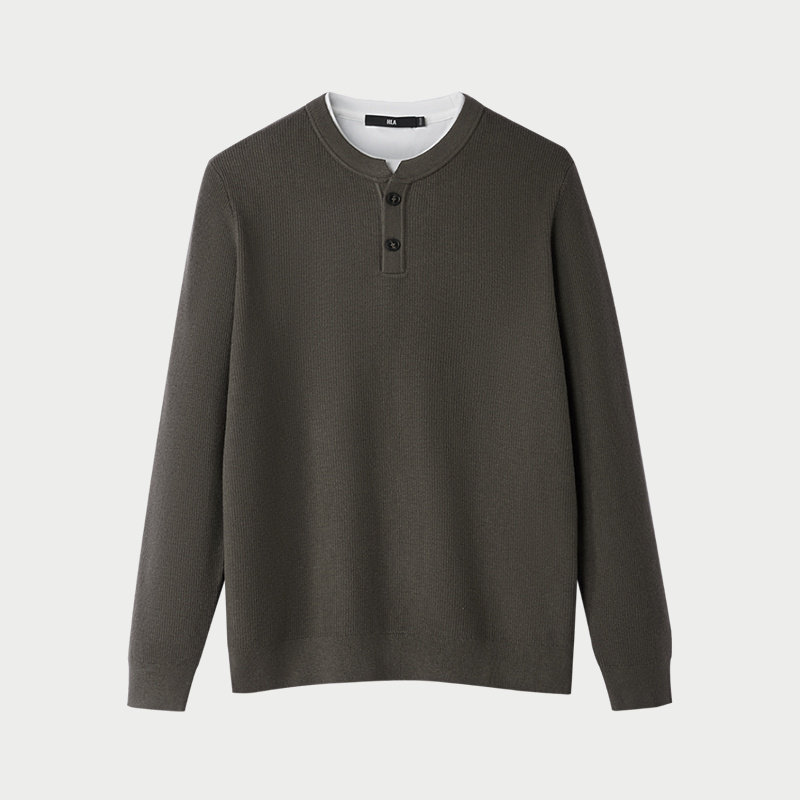 HLA/海澜之家双层领长袖针织衫2025秋冬新时尚有型保暖修身毛衣男