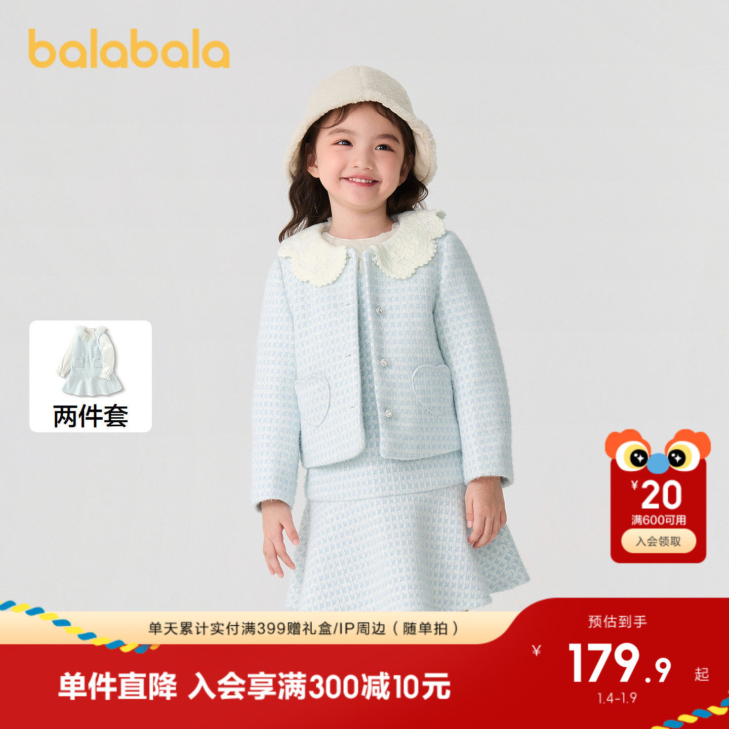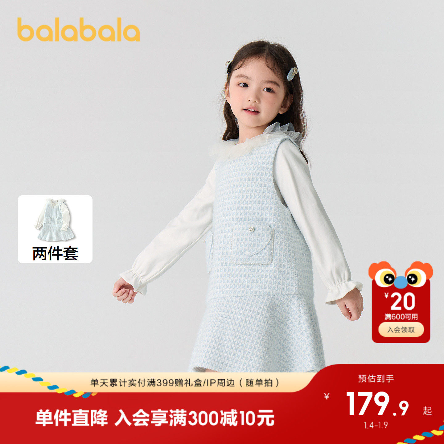 巴拉巴拉女童裙套装千鸟格小香风两件套秋冬装背心裙洋气时尚公主