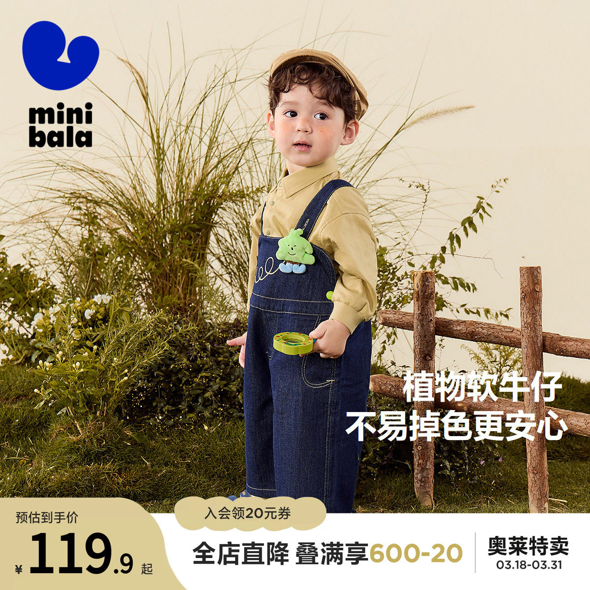 【软牛仔】迷你巴拉巴拉男女童裤子不易褪色宽松直筒裤宝宝背带裤