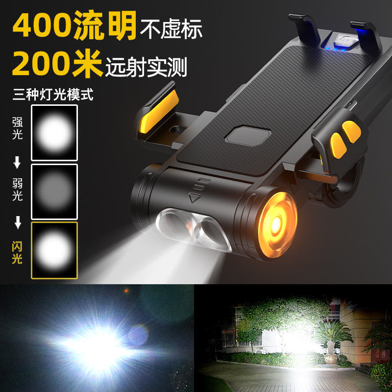 自行车灯山地车夜骑前灯单车充电强光手电筒骑行装备配件手机支架