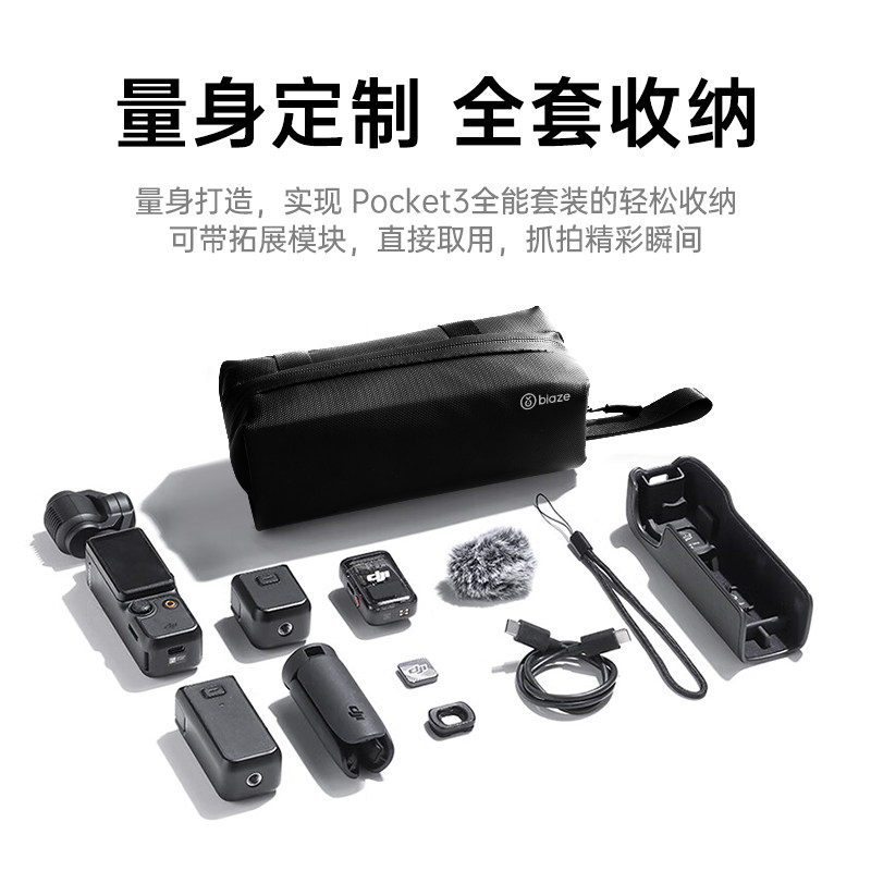 毕亚兹适用DJI大疆Pocket3收纳包手持运动相机配件收纳盒大容量数码收纳包PK3防水便携包手提斜挎包保护盒