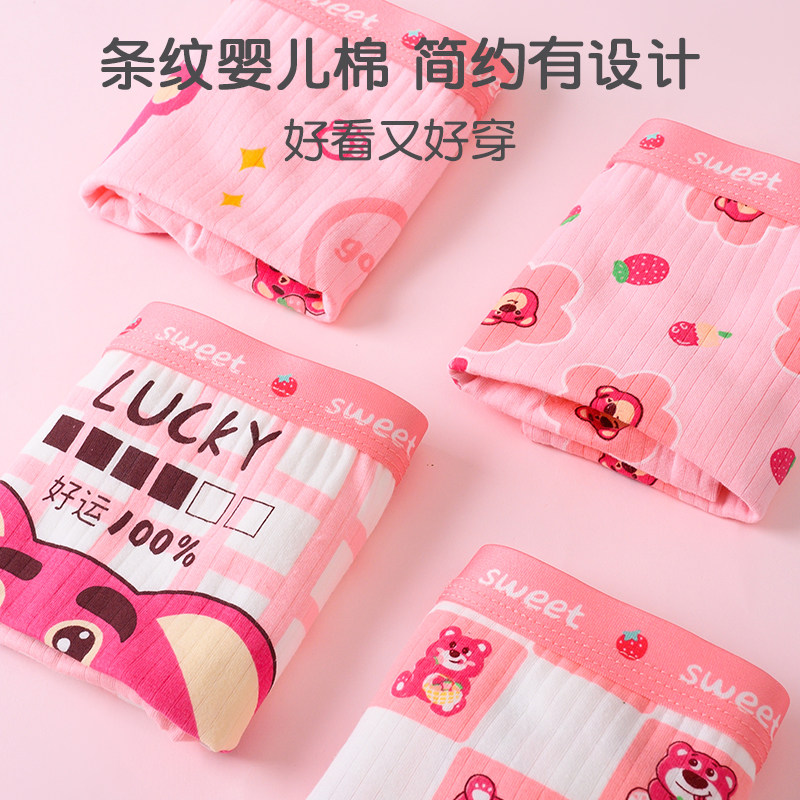 米乐鱼儿童内裤女童四角短裤宝宝透气平角裤衩男童a类纯棉裤衩