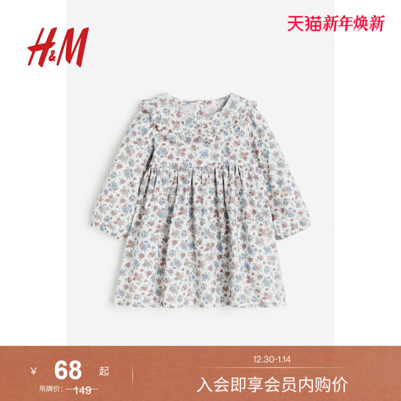 HM童装女婴裙子冬季有领碎花长袖连衣裙1199564