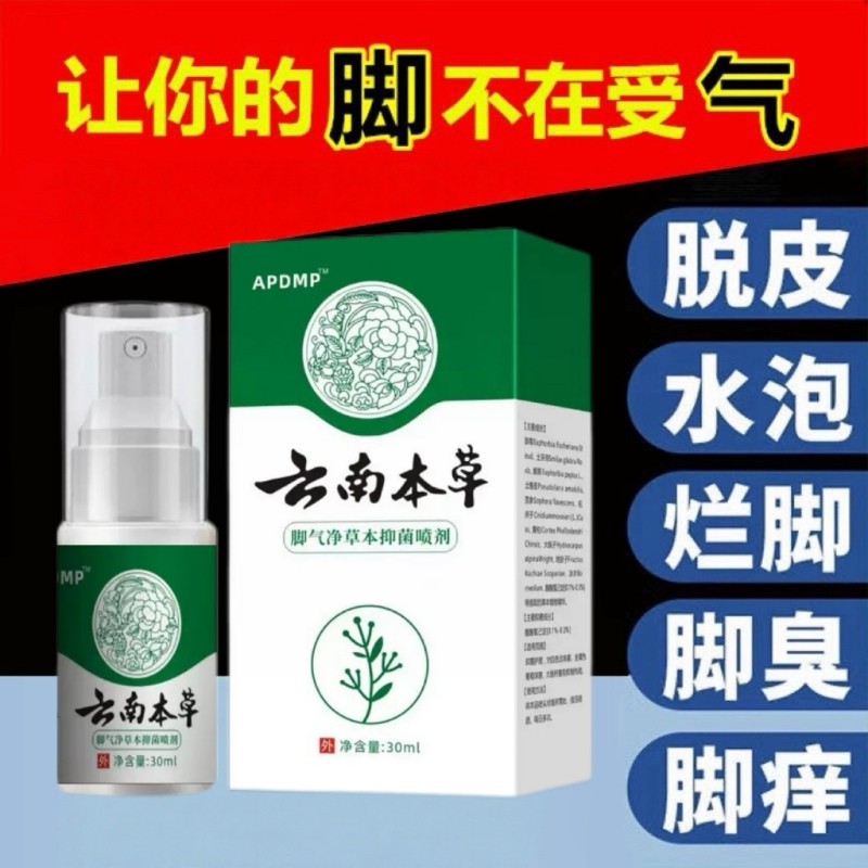 云南本草脚气喷雾剂烂脚丫脱皮糜烂止痒脚趾杀菌真菌感染专用脚汗