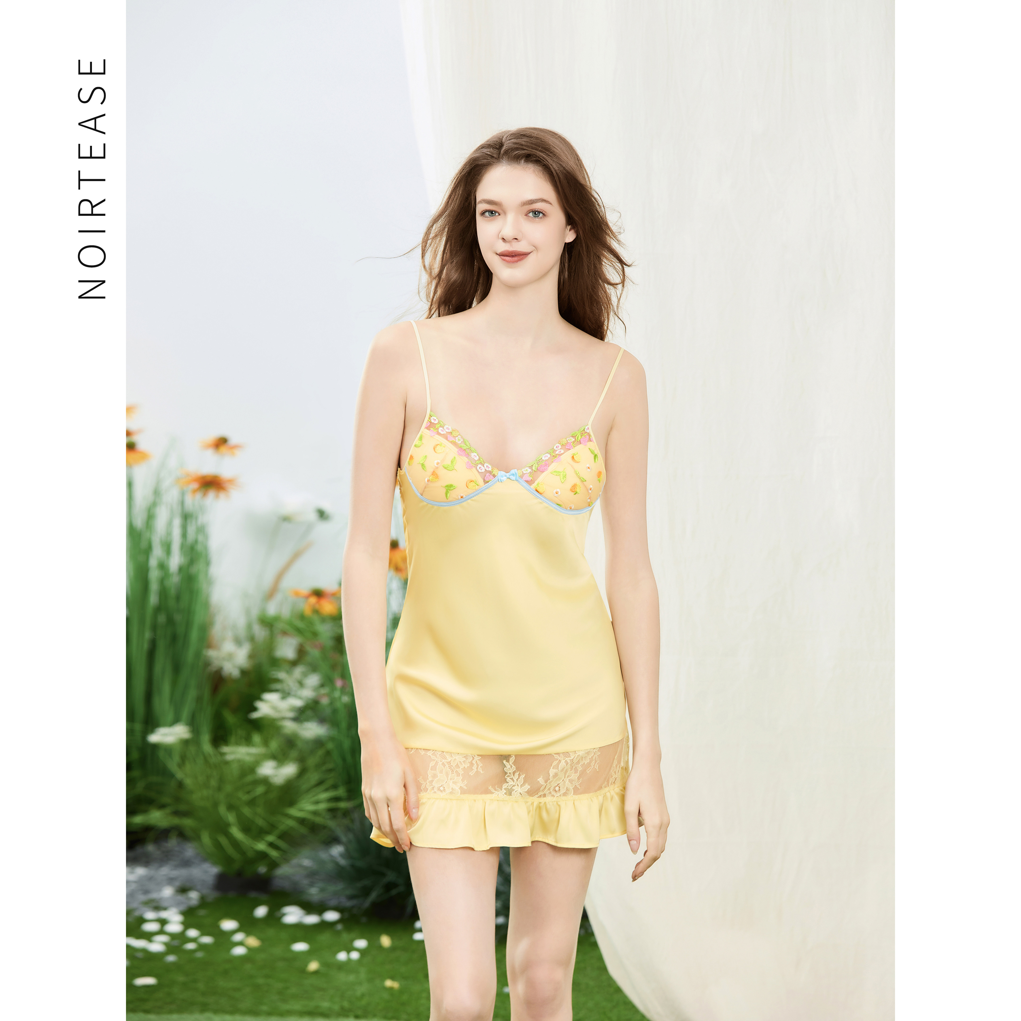 NoirTease2025年春夏新款性感丝质薄款睡裙女士胸垫蕾丝吊带睡衣