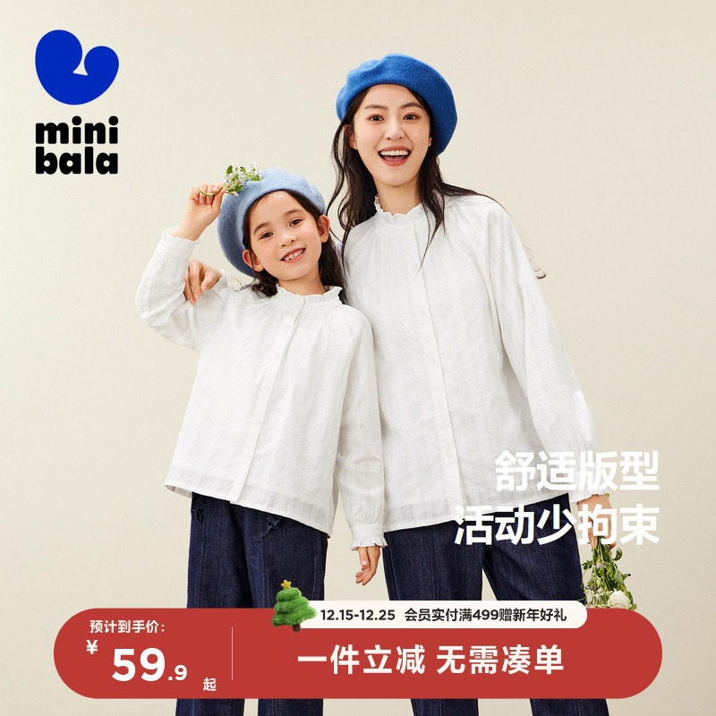 【mini亲子】迷你巴拉巴拉女童春秋新款木耳边上衣长袖衬衫