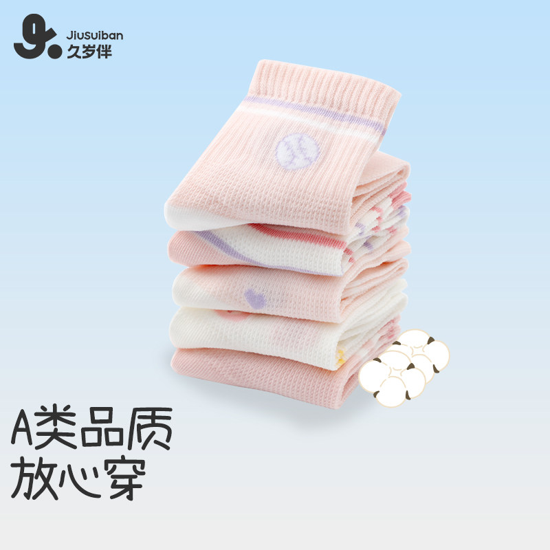 久岁伴女童袜子夏季薄款中筒袜中大童学生公主网眼袜透气宝宝棉袜