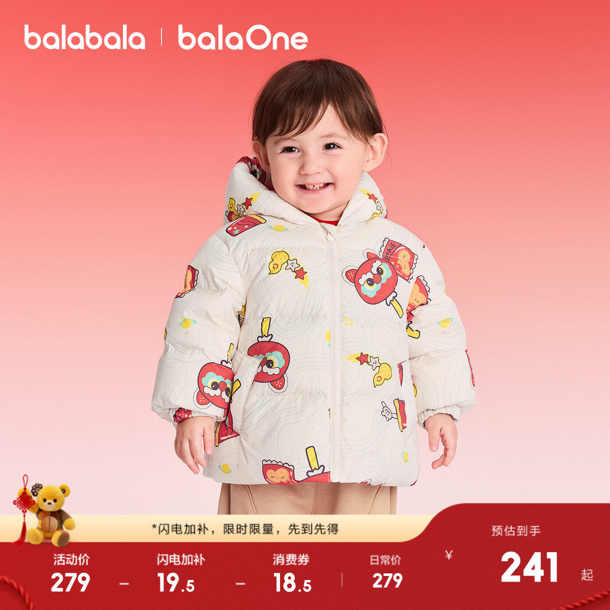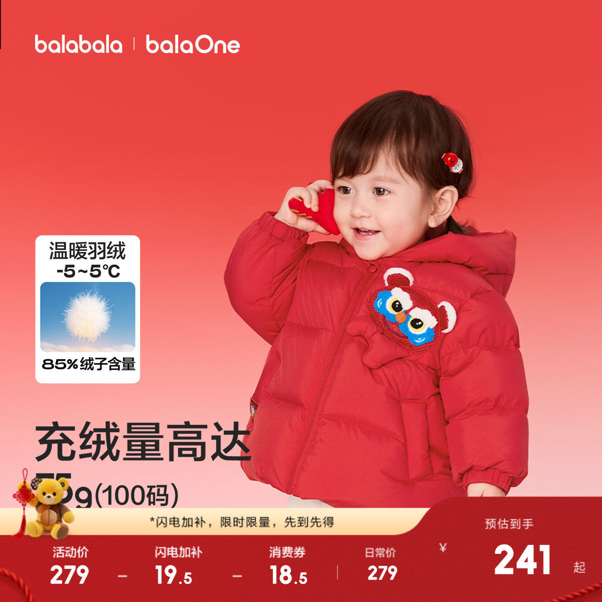 巴拉巴拉童装婴儿羽绒服女童2025新款儿童冬装红色外套宝宝拜年服