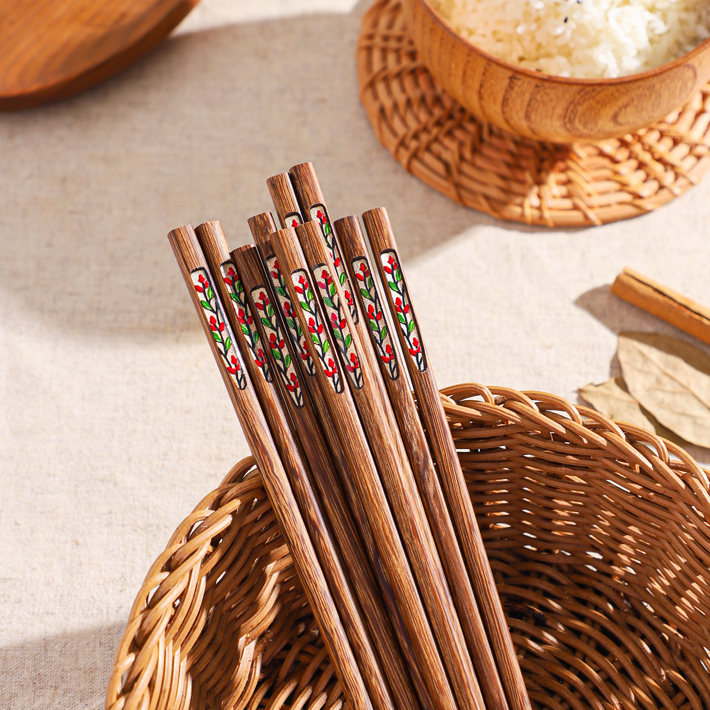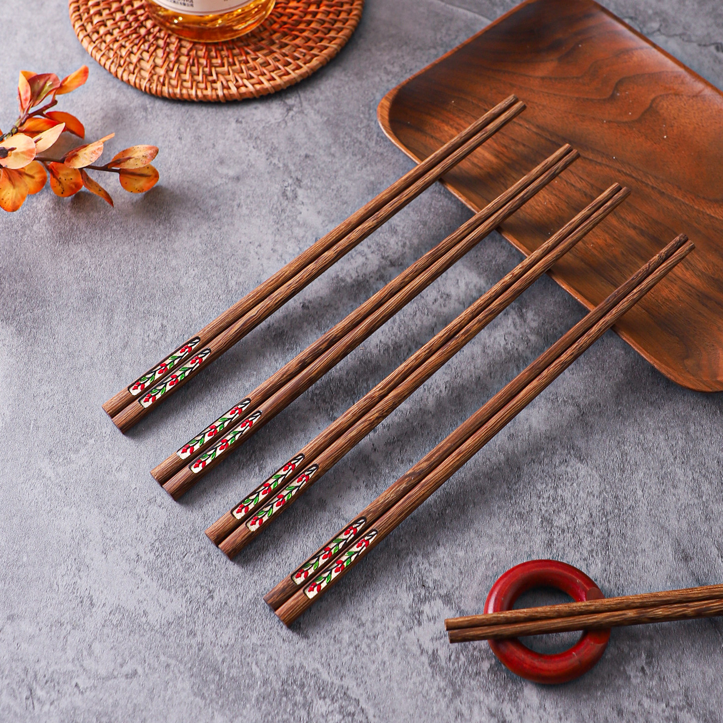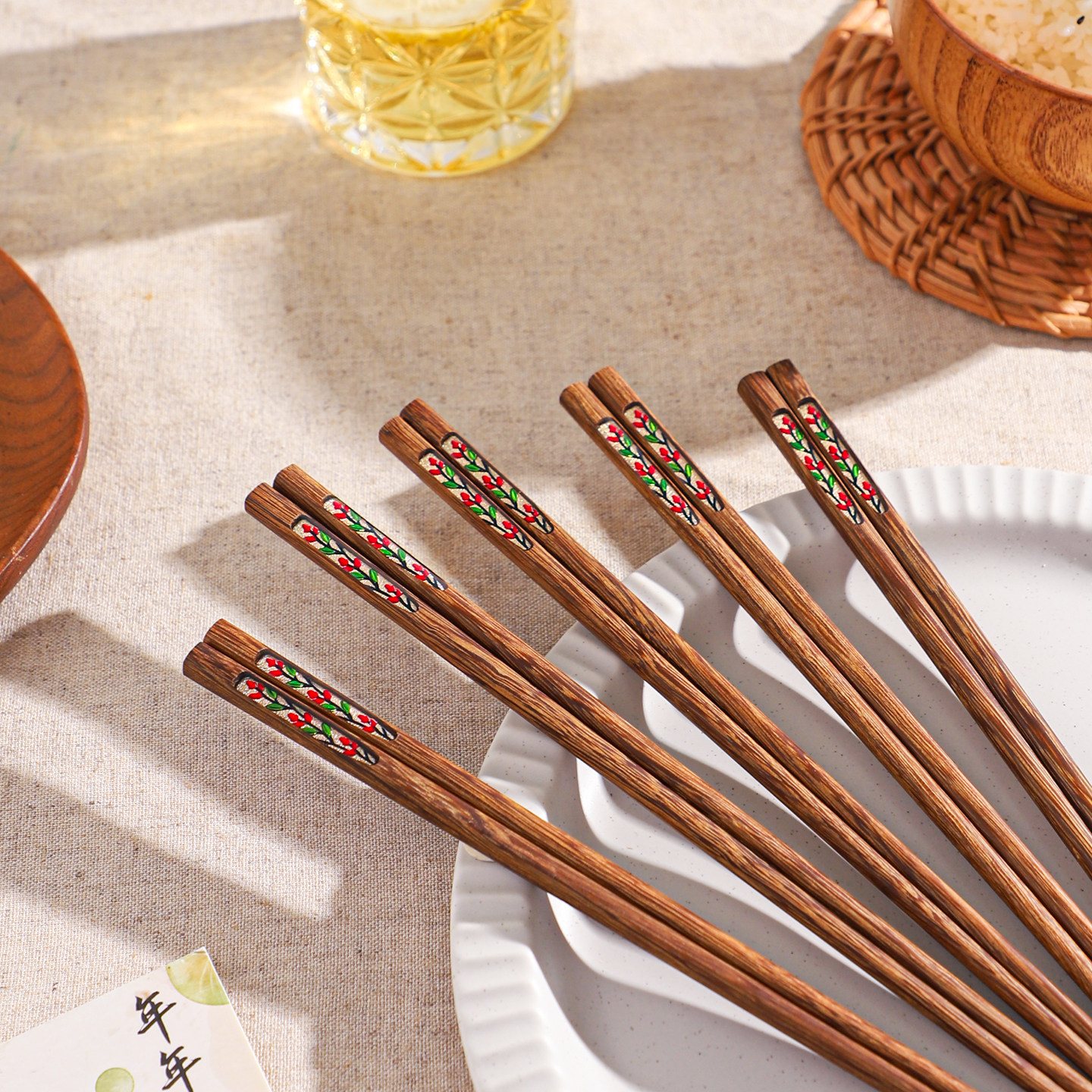 舍里中式鸡翅木筷子家用防霉防滑高档实木筷5双装一人一筷分餐筷