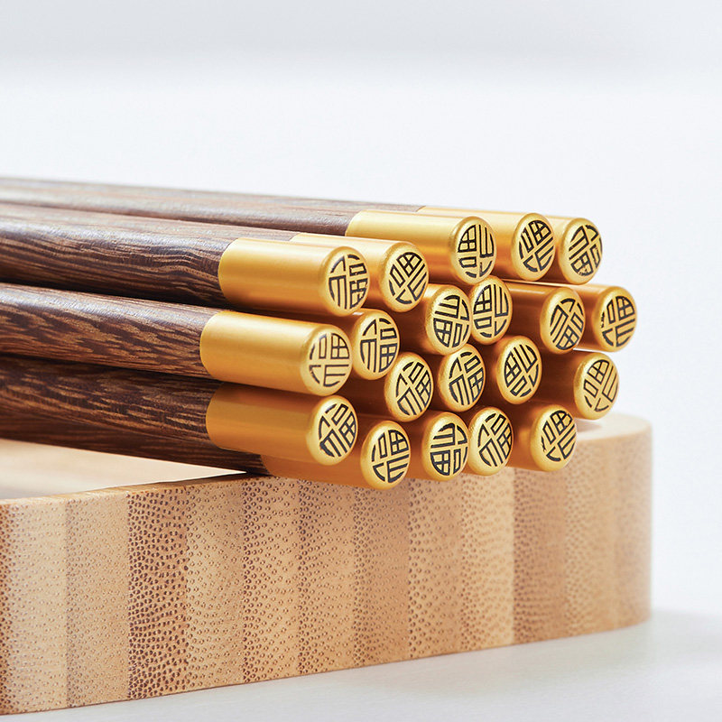 鸡翅木筷子家用无漆无蜡家庭新款中国风高颜值实木筷子套装