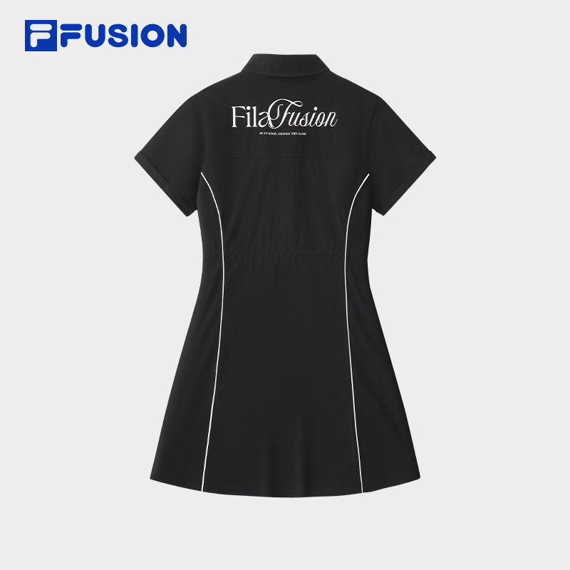 FILA FUSION斐乐潮牌女子连衣裙2025夏新款时尚休闲宽松翻领裙子