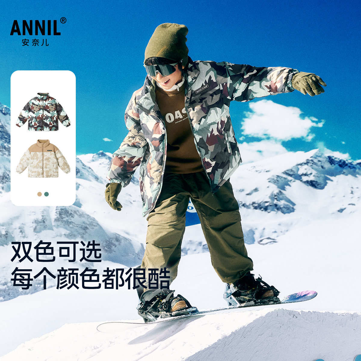安奈儿童装男童短款羽绒服冬迷彩印花保暖三防宽松休闲时尚