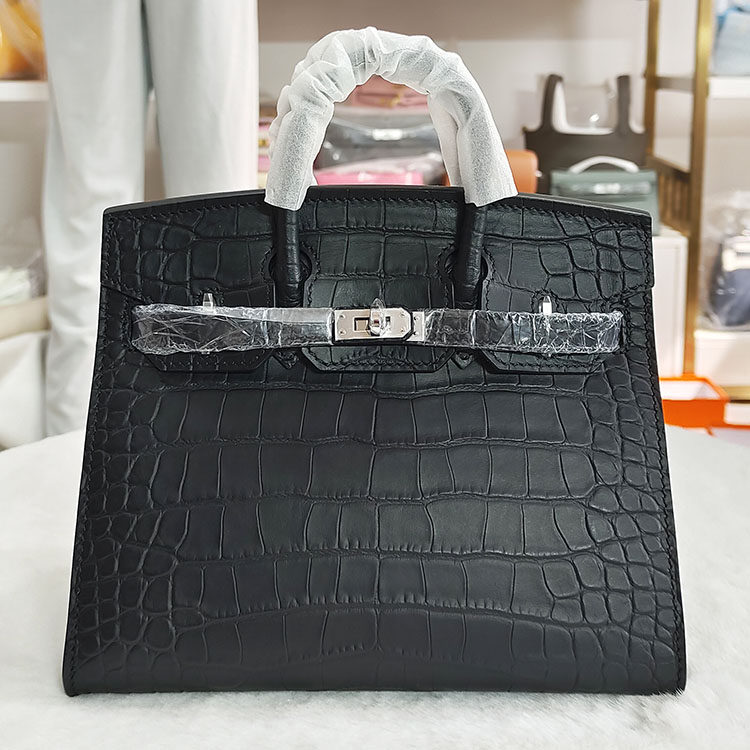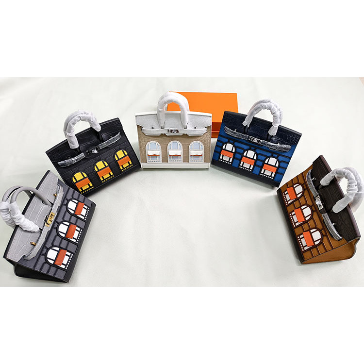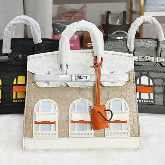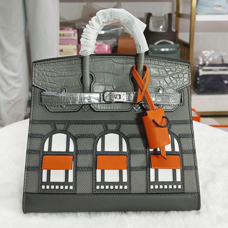 新款铂金包小房子包鳄鱼纹外缝手掌纹拼色20CM牛皮手提女包凯莉