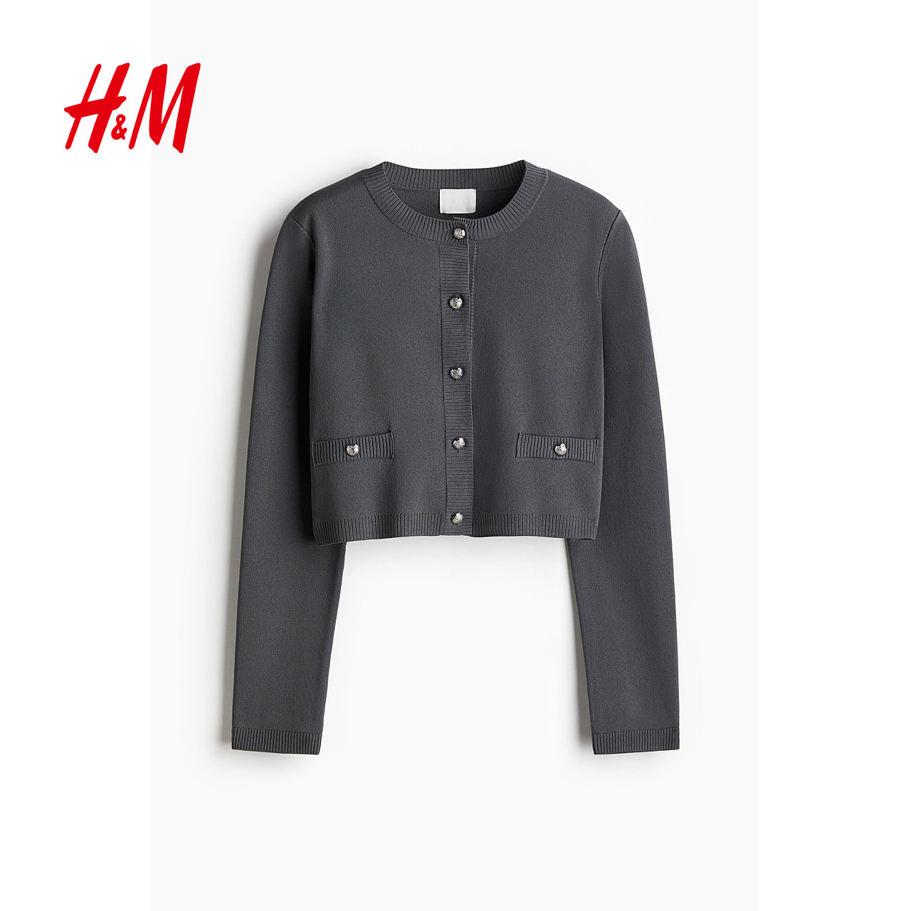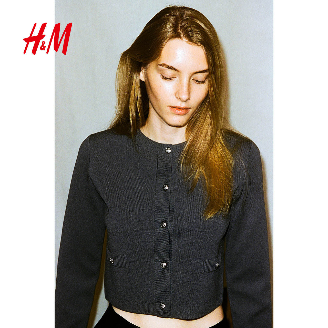 HM女装毛针织衫冬季气质时尚休闲潮流细密针织miu系开衫1265360