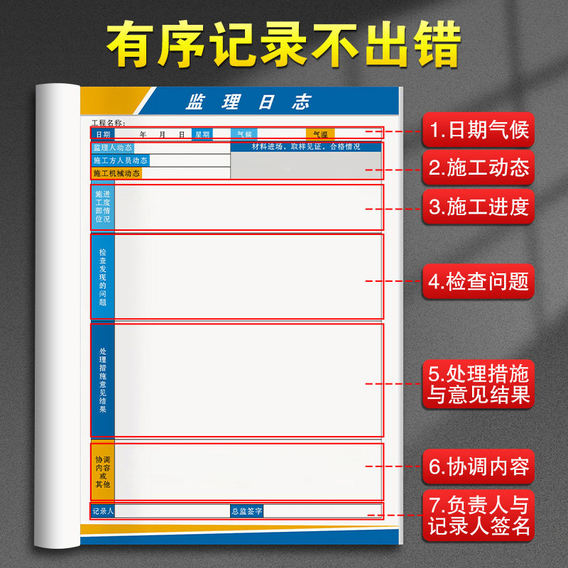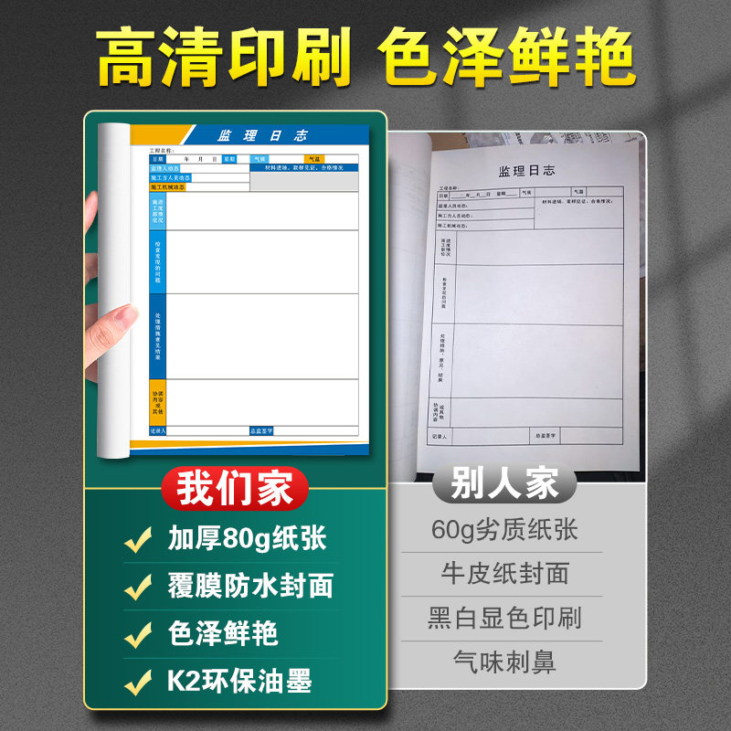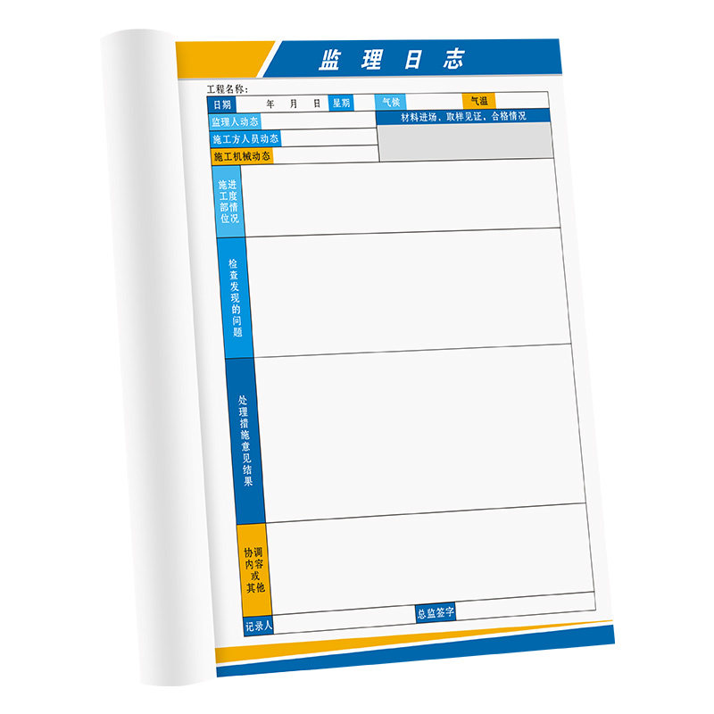 监理日志记录本双面建筑工程装修旁站手册薄管理安全员施工日记本