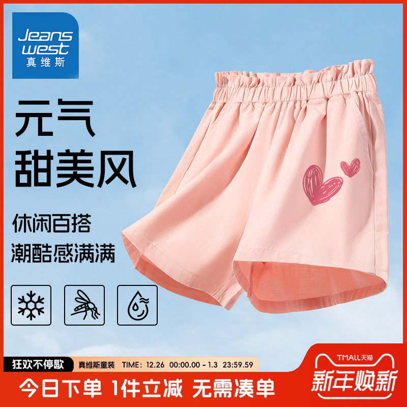 真维斯童装女童裤子夏季薄款女孩纯棉洋气短裤儿童夏装宽松运动裤