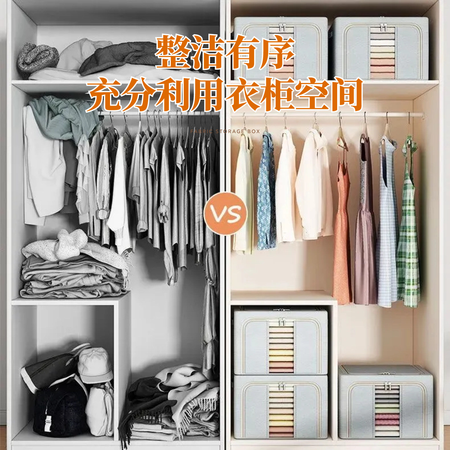 拍1发4衣服收纳筐神器布艺装衣物衣柜分层收纳箱家用框裤子整理盒
