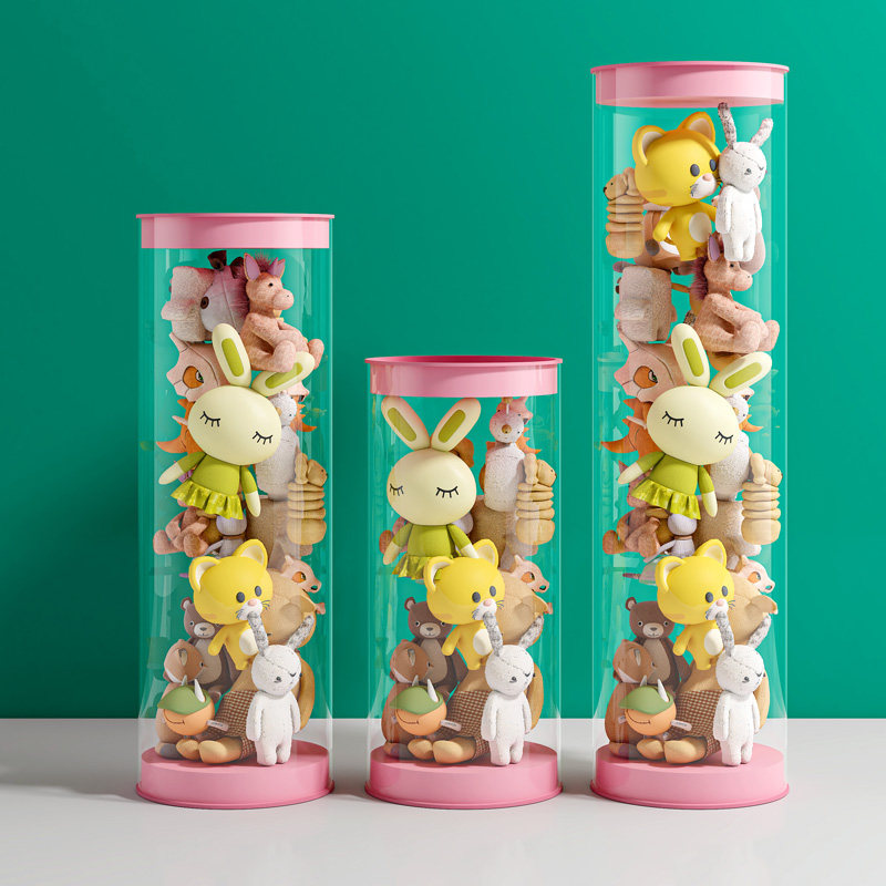 娃娃收纳筒毛绒玩偶布收纳桶儿童玩具公仔整理收纳神器透明拉链款
