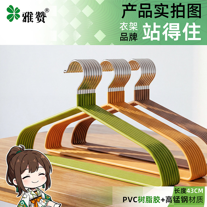 雅赞衣架家用加粗加厚防滑无痕不鼓包衣柜宿舍阳台收纳耐用晾衣架