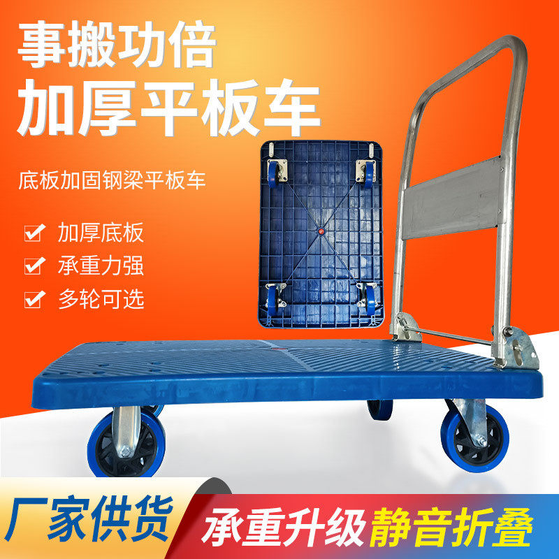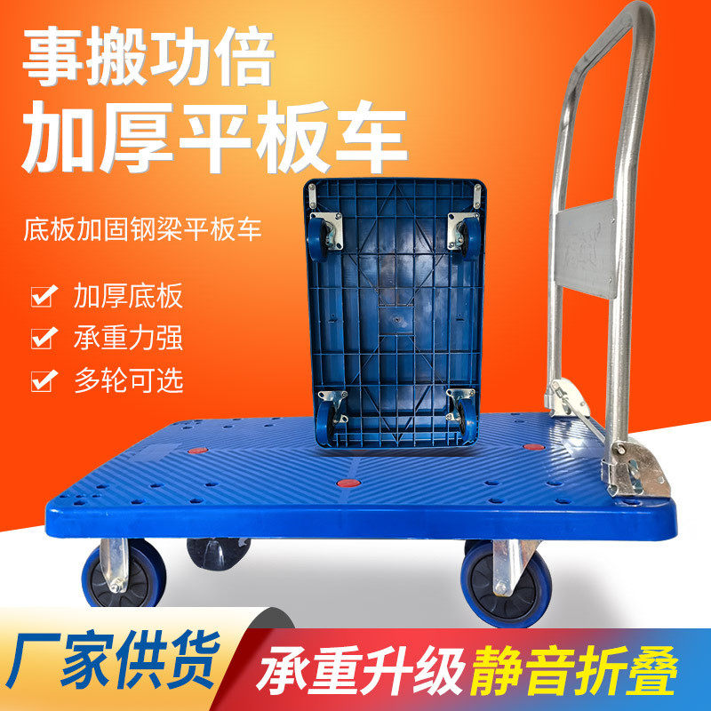 定制四轮平板手推车运输工具折叠拖车拉货仓库搬运小推车轻便