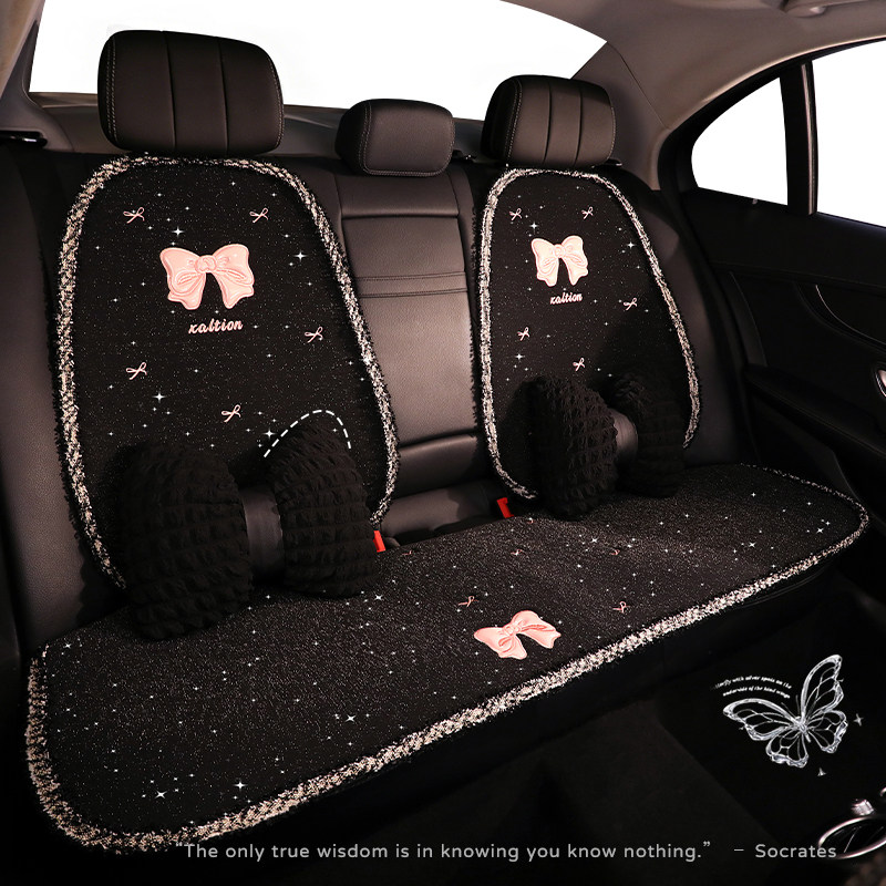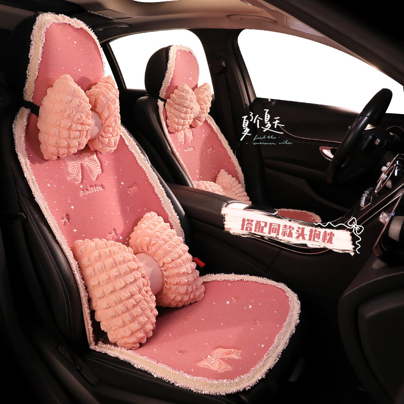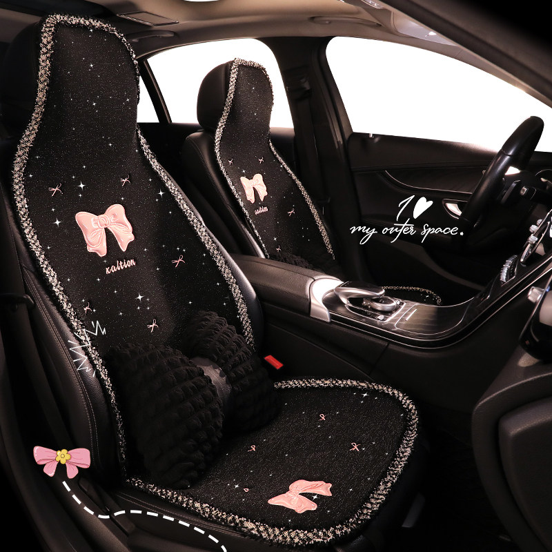 可爱蝴蝶结汽车坐垫四季通用款透气舒适车座垫闪闪发光女士车座套