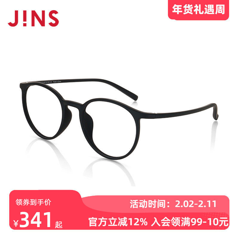 JINS睛姿女士TR90近视眼镜透明小圆镜框可加防蓝光镜片LRF18S248