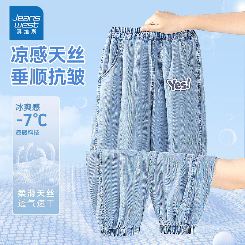真维斯儿童裤子夏薄款天丝束口防蚊裤2025新款凉感防晒女童牛仔裤