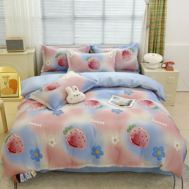 秋冬季加厚四件套牛奶绒被套床单双面加绒被罩床笠学生宿舍三件套