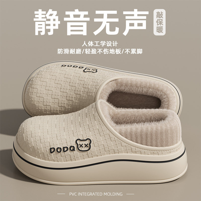 红豆踩屎感棉拖鞋女士秋冬季室内家居2025新款毛绒保暖情侣棉拖男