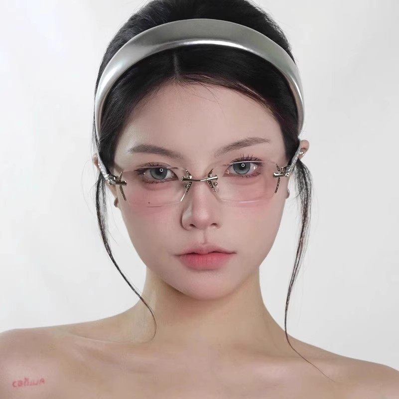 高智感纯欲无边框眼镜金属素颜女可配度数近视眼镜框架y2k欧美风