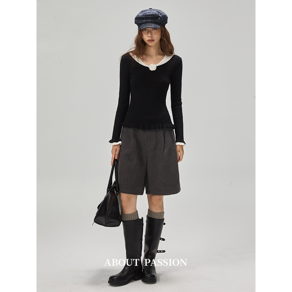 About Passion · 韩系通勤西装休闲裤宽松显瘦简约高腰阔腿短裤