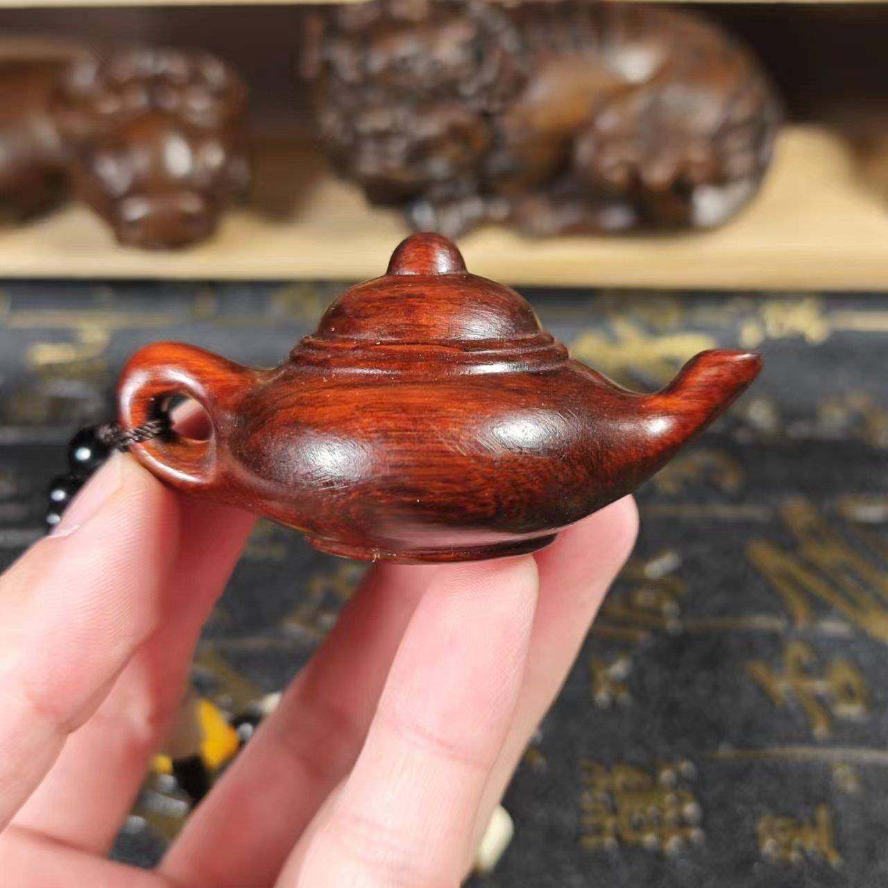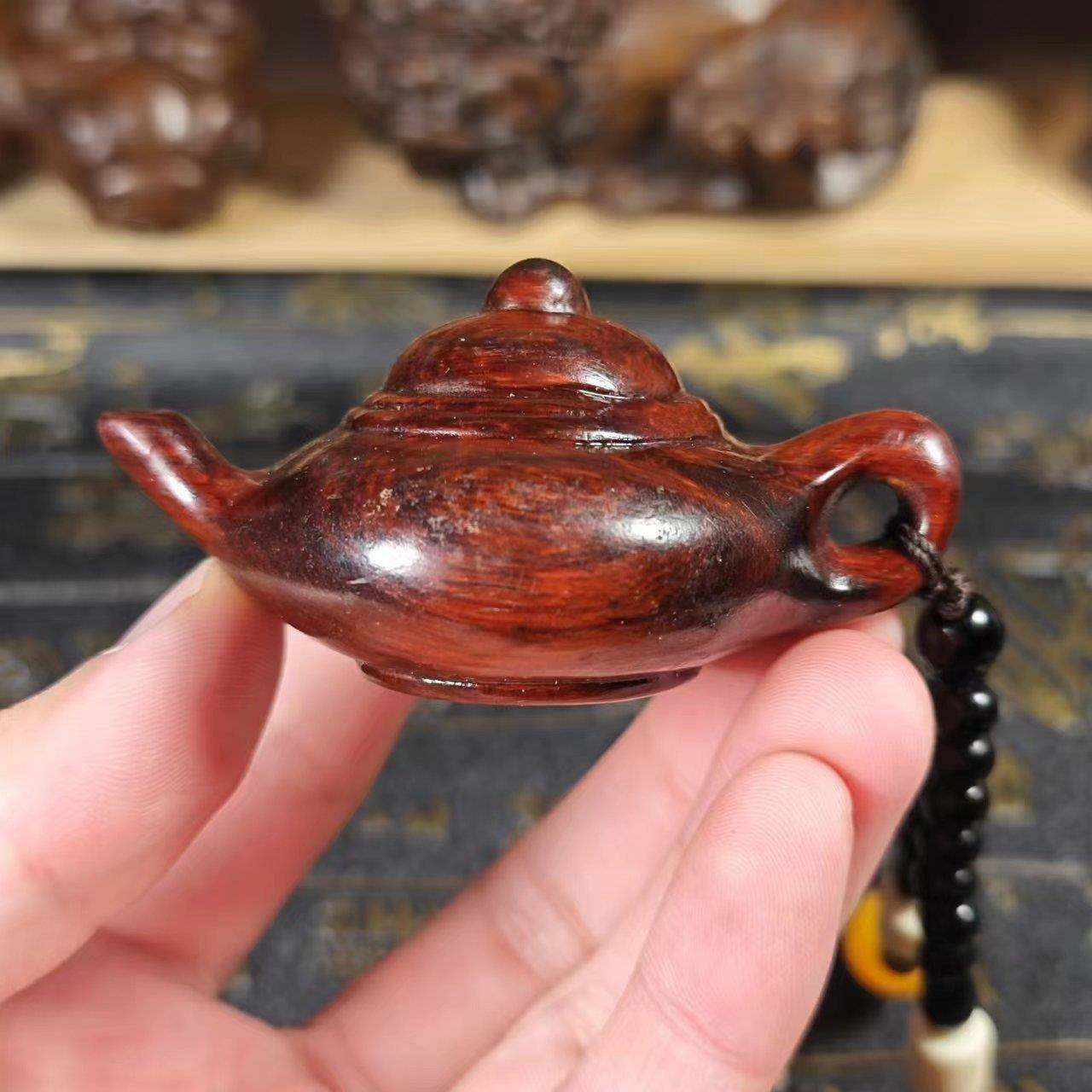 7公分小叶紫檀木雕手把件把把壶光面壶挂件茶壶实木文玩工艺品