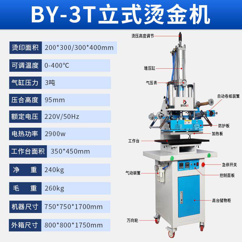 -3大压力气动烫金机3吨增压缸自动卷金烫印机纸张热压烙印