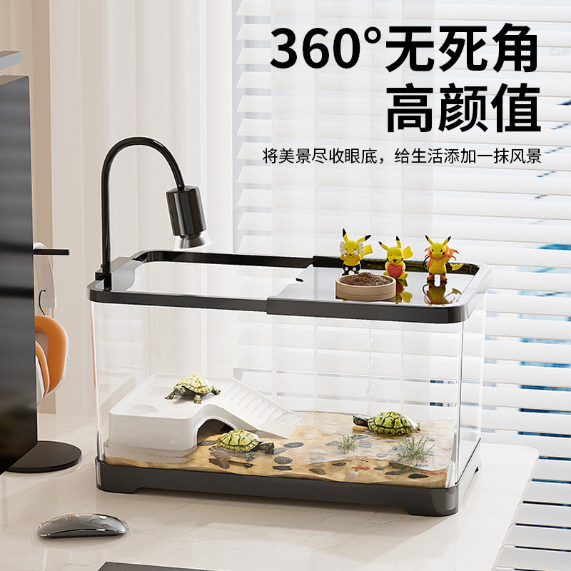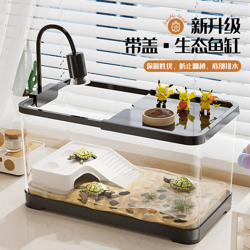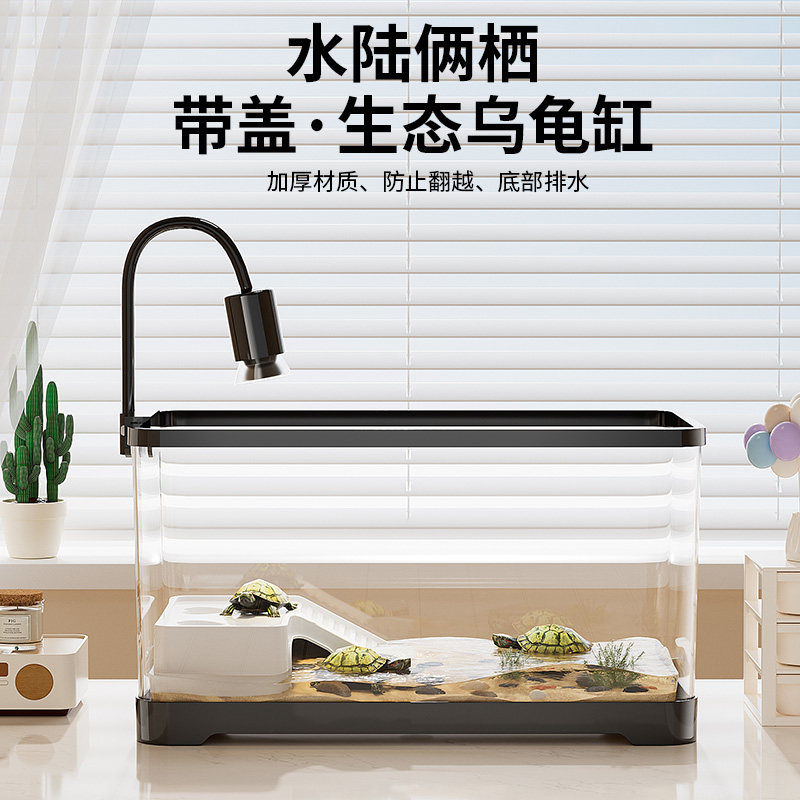 乌龟饲养缸生态造景家用带盖小型别墅爬台底部排水巴西龟缸专用箱