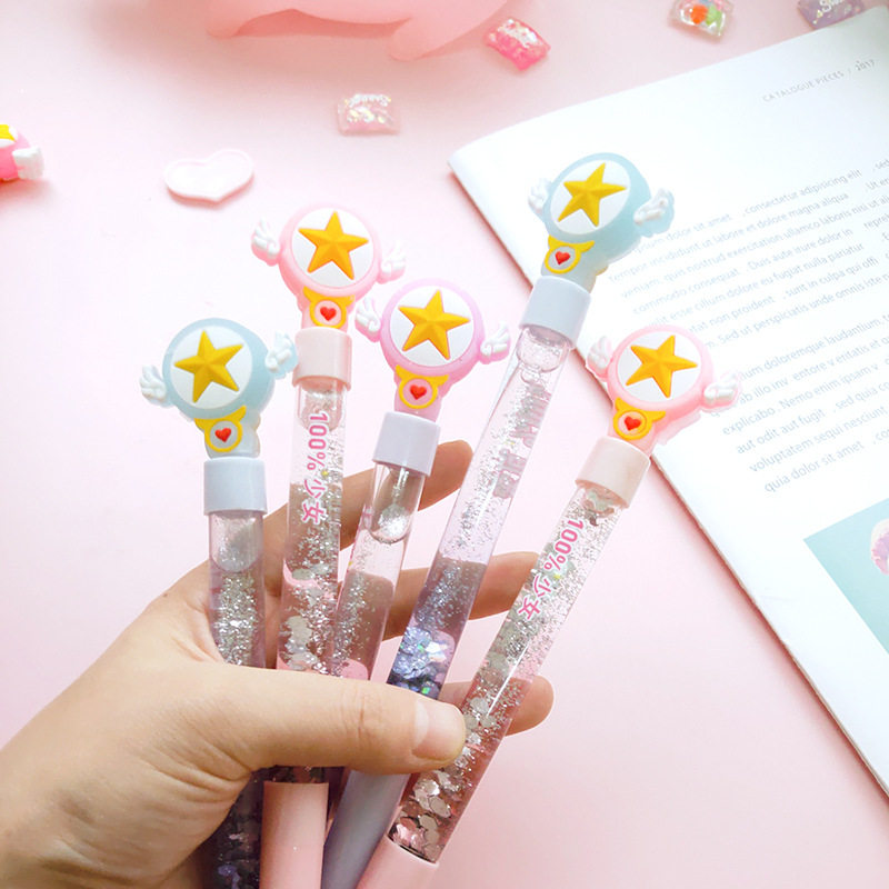 粉色仙女笔流沙中性笔可爱创意少女网红水笔学生六一文具用品黑色