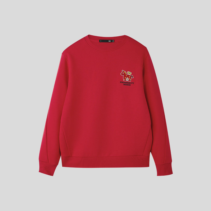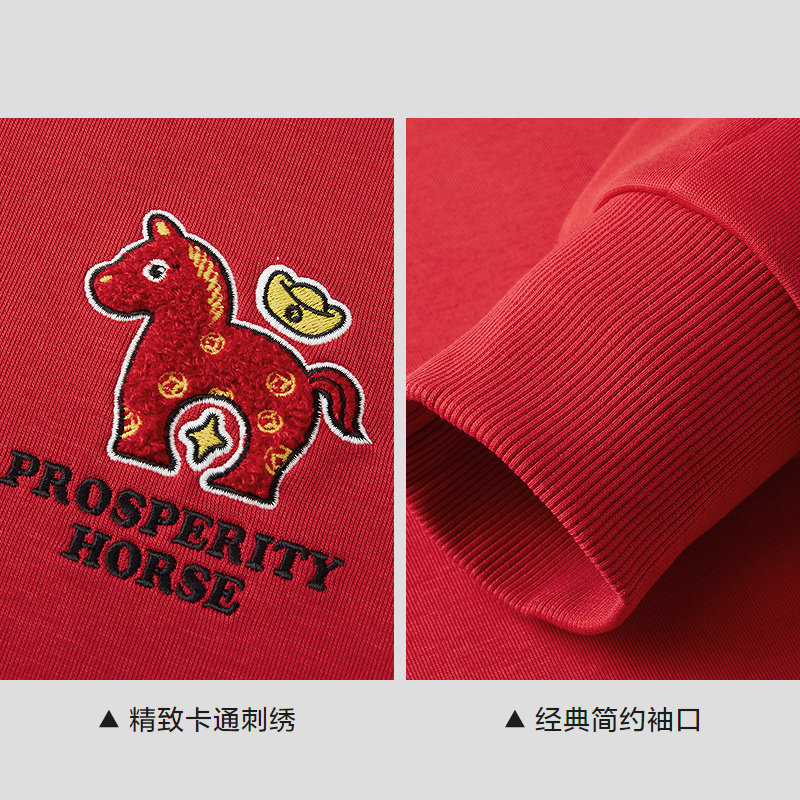 HLA/海澜之家马年贺岁系列卫衣26春秋新圆领卡通刺绣五明治长袖男