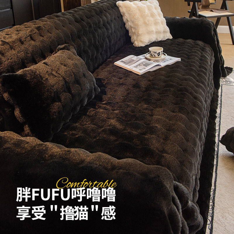 兔毛绒沙发垫冬2025新款加厚沙发盖布巾秋冬轻奢沙发坐垫套罩毯子