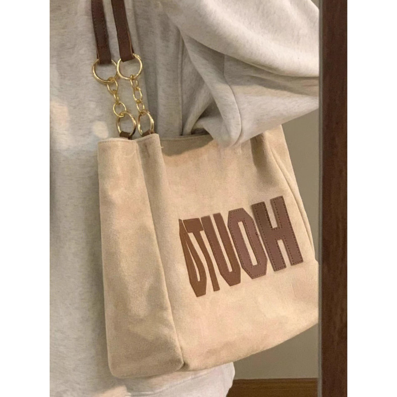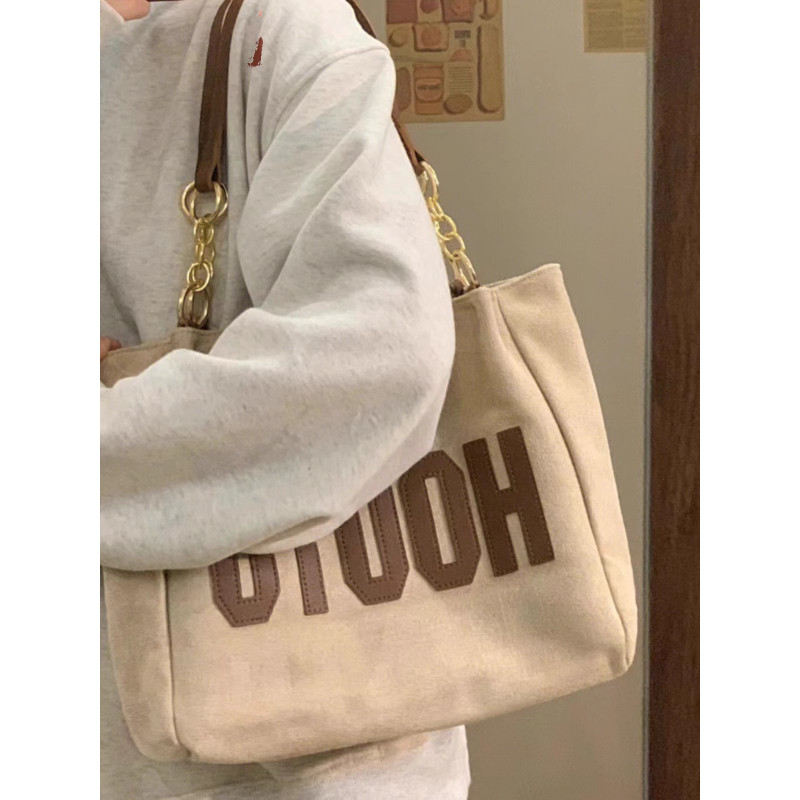 伊布古奇大学生上课单肩帆布包大包包女大容量2025新款通勤托特包