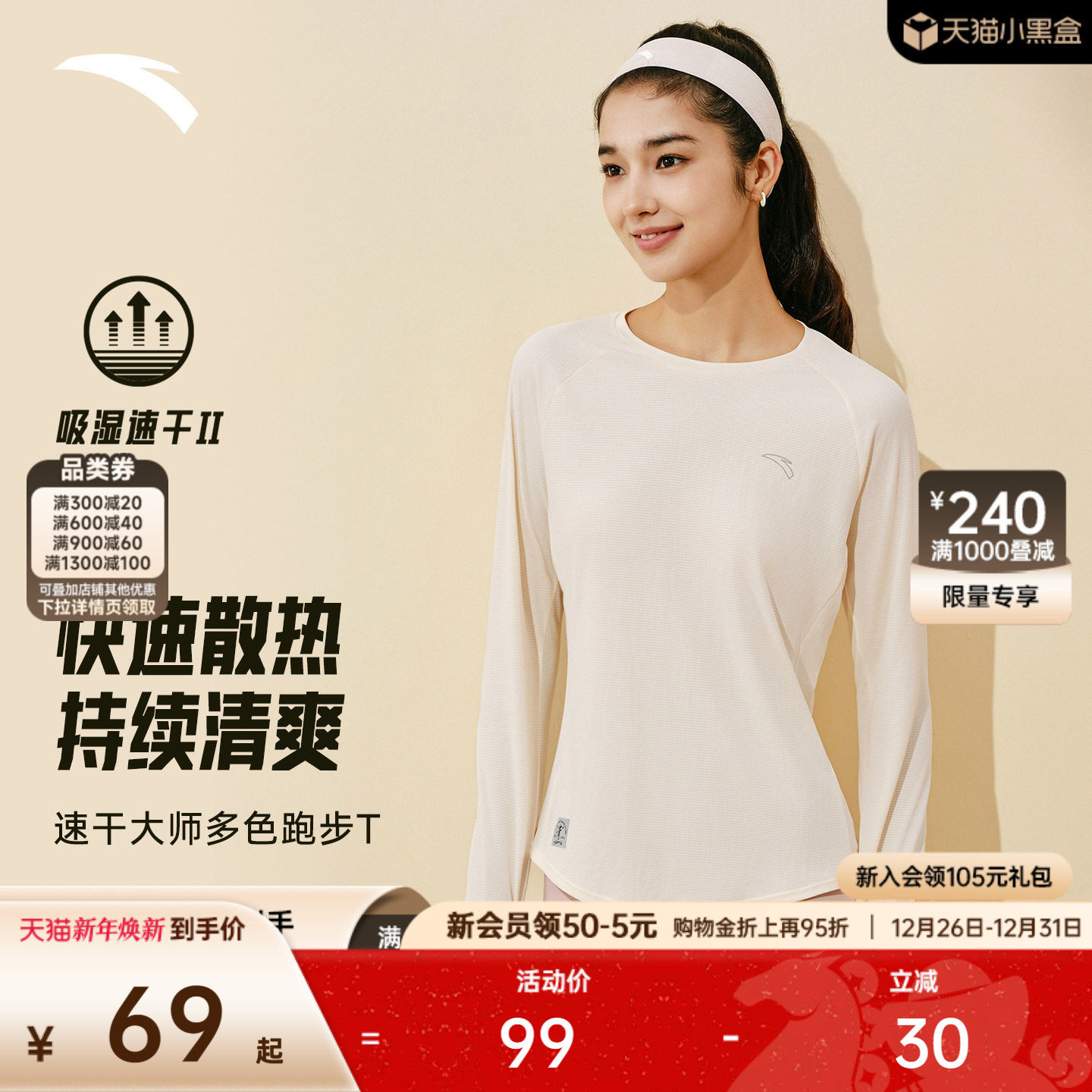 安踏跑步速干衣长袖t恤女冬季瑜伽服内搭针织训练羽毛球运动上衣